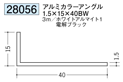 28053 アルミ製アングル(不等辺) アルミカラ-アングル1.5×15×30BW 電解ブラック 長さ3m 創建 カラーアングル1.5×15×30BW 長さ3m