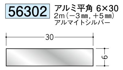 アルミ製平角(フラットバー) アルミ平角6×100 アルマイトシルバー 長さ2m