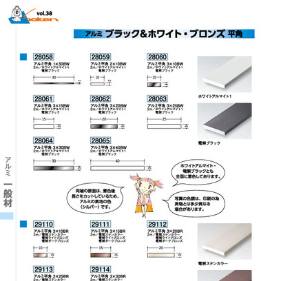 アルミ製平角(フラットバー) アルミカラー平角3×15BR カラー:3色 長さ2m