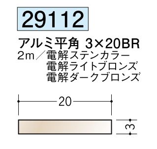 29114 アルミ製平角(カラー) アルミ平角3×3mBR 電解ライトブロンズ 長さ2m 創建 アルミカラー平角3×30BR 長さ2m