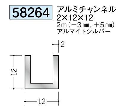 アルミ製チャンネル アルミチャンネル 2×12×12 アルマイトシルバー 長さ2m 創建