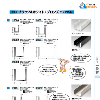 アルミ製チャンネル アルミカラーチャンネル 2×25×25BR カラー:3色 長さ2m 創建