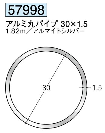 アルミ製丸パイプ アルミ丸パイプ 32×1.5 アルマイトシルバー 長さ1.82m