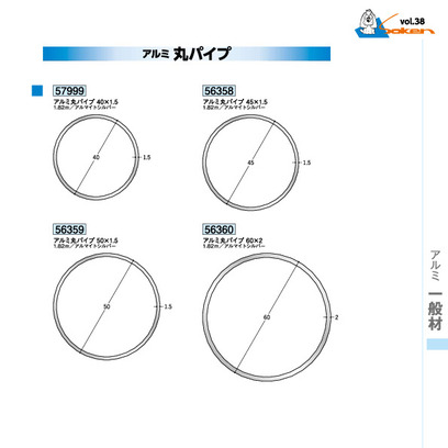 アルミ製丸パイプ アルミ丸パイプ 50×1.5 アルマイトシルバー 長さ1.82m 創建