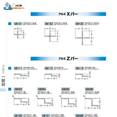 アルミ製Xバー アルミXバー9+9 アルマイトシルバー 長さ3m 創建