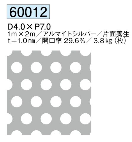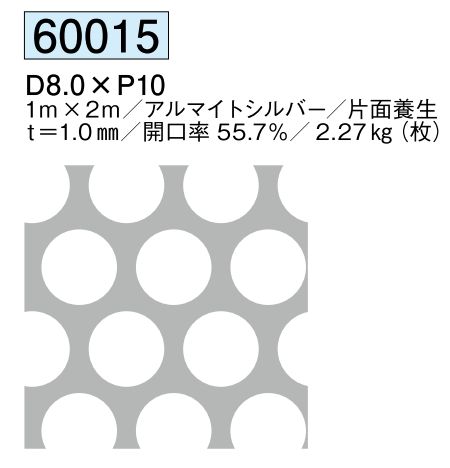 アルミ製パンチングメタル D5.0×P8.0 アルマイトシルバー サイズ:1m×2m