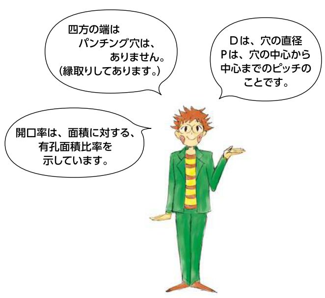Dは、穴の直径、Pは穴の中心から中心までのピッチのことです。