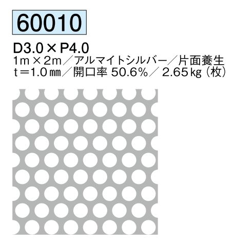 アルミ製パンチングメタル D5.0×P8.0 アルマイトシルバー サイズ:1m×2m