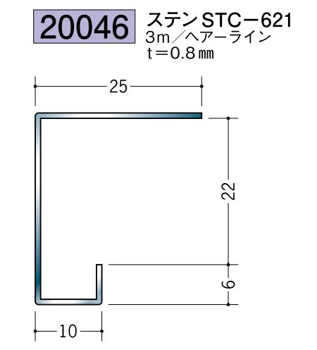 20002 ステンレス製コ型見切縁 ステンSTC-8.5 ヘアライン 長さ3m 創建 ステンSTC-8.5 長さ3m