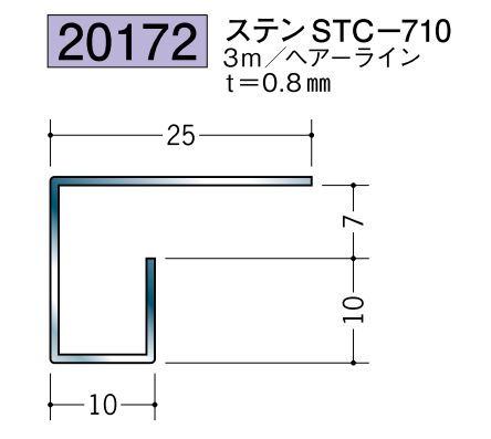 20042 ステンレス製コ型見切縁 ステンSTC-608 ヘア-ライン 長さ3m 創建 ステンSTC-608 長さ3m