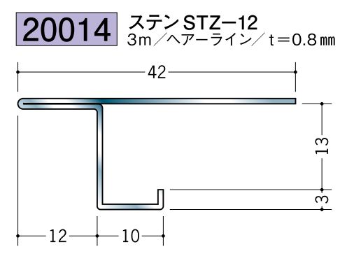 ステンレス製コ型見切縁 ステンSTC-1620 ヘアライン 長さ3m
