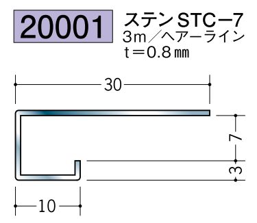 ステンレス製コ型見切縁 ステンSTC-1620 ヘアライン 長さ3m