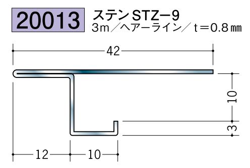 20166 ステンレス製コ型見切縁 ステンSTC-1620 ヘア-ライン 長さ3m 創建 ステンSTC-1620 長さ3m