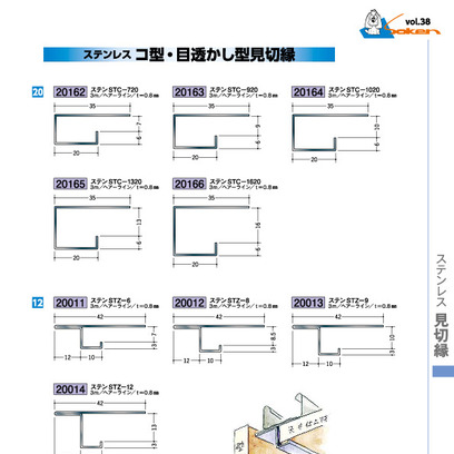 ステンレス製コ型見切縁 ステンSTZ-8 ヘアーライン 長さ3m 創建