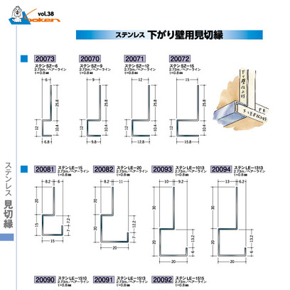 ステンレス製下がり壁見切縁