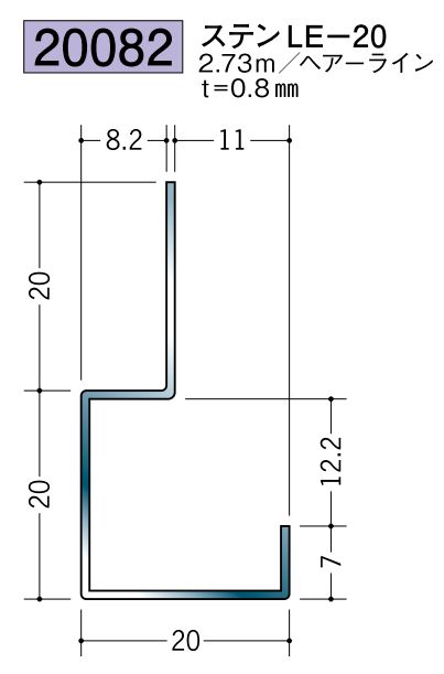 ステンレス製下がり壁見切縁 ステンLE-1515 ヘアライン 長さ2.73m