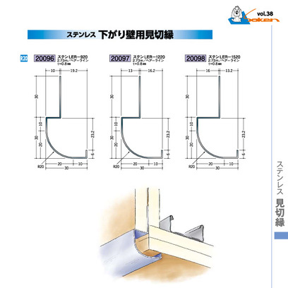 ステンレス製下がり壁見切縁