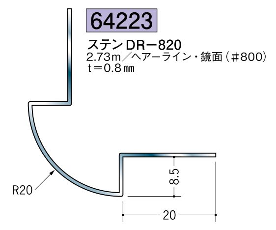 64044 創建 出隅ジョイナ- ステン角型出隅15 鏡面#800 長さ2.73m 創建 ステン角型出隅15 長さ2.73m