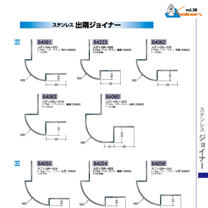 ステンレス製出隅ジョイナー ステンDR-925 ヘアーライン/鏡面(#800) 長さ2.73m 創建