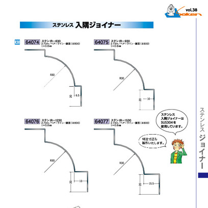ステンレス製入隅ジョイナー ステンIR-930 ヘアーライン/鏡面(#800) 長さ2.73m 創建