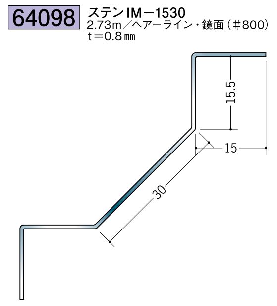 ステンレス製入隅ジョイナー ステンIM-1230 ヘアライン/鏡面(#800) 長さ2.73m