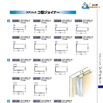 ステンレス製コ型ジョイナー ステンSCS-13 ヘアーライン 長さ2m 創建