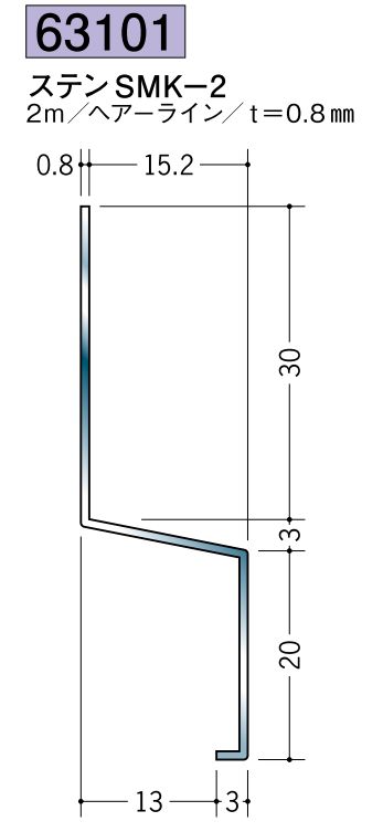 ステンレス製腰掛見切 ステンSKM-1020 ヘアーライン/鏡面(#800) 長さ2.73m 創建