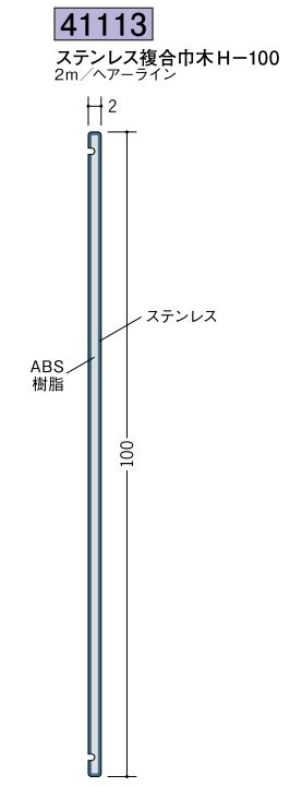 20113 ステンレス製立ち上げ見切 ステンSUC-3.5 ヘア-ライン 長さ2m 創建 ステンSUC-3.5 長さ2m