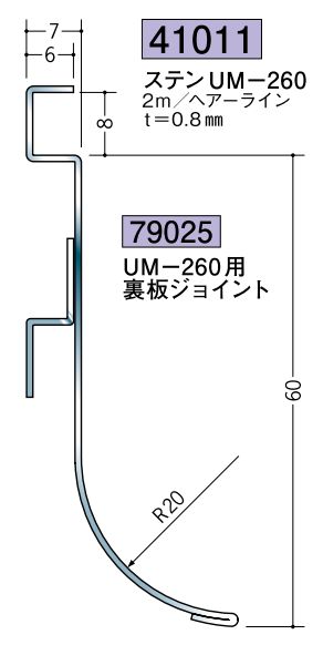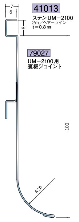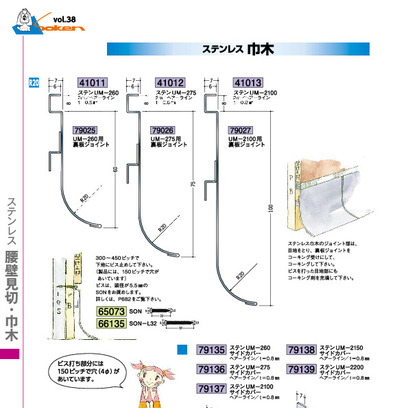 ステンレス製巾木 ステンUM-275 ヘアーライン 長さ2m