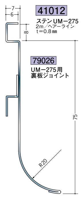 ステンレス製巾木 ステン複合巾木H-75 ヘアーライン 長さ2m
