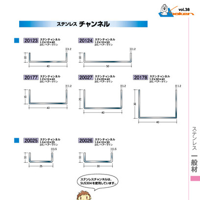 ステンレス製チャンネル ステンチャンネル1.2×15×40 ヘアーライン 長さ3m 創建