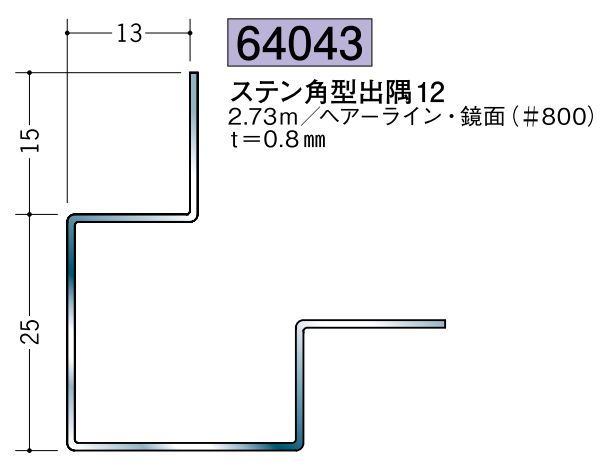 64064 創建 出隅ジョイナ- ステンDR-630 ヘア-ライン 長さ2.73m 創建 ステンDR-630 長さ2.73m