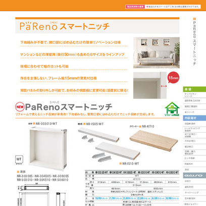 PaRenoスマートニッチオプション カウンター NR-KT10 282×120.5mm 城東テクノ