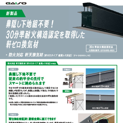 「破風レス」でスマートに納められる防火対応の軒天換気材です。