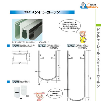 アルミ製スタイミーカーテン アルミSU-1B(ベース)/SU-3(カバー) 長さ3m カラー:3色