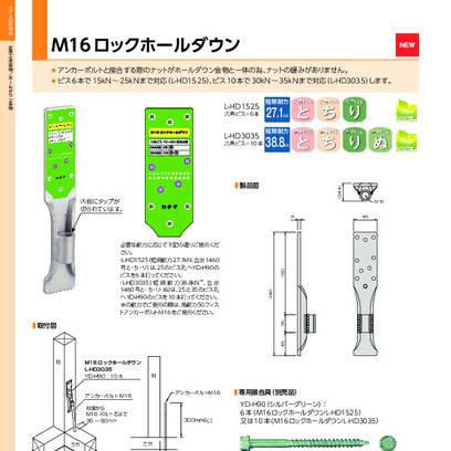 M16 ロツクホールダウン L-HD(25KN/35KN対応)・(専用ビス)Y-HD90