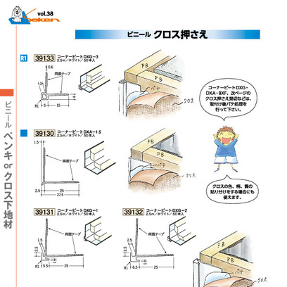 ビニールクロス押さえ コーナービート DXG-2 ホワイト 長さ2.5m