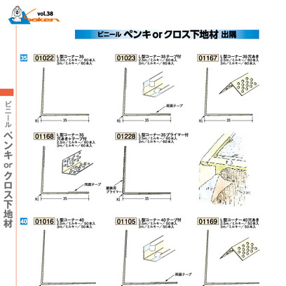 ビニール ペンキorクロス下地材出隅 L型コーナー40(穴あき) 長さ2.5m/3m