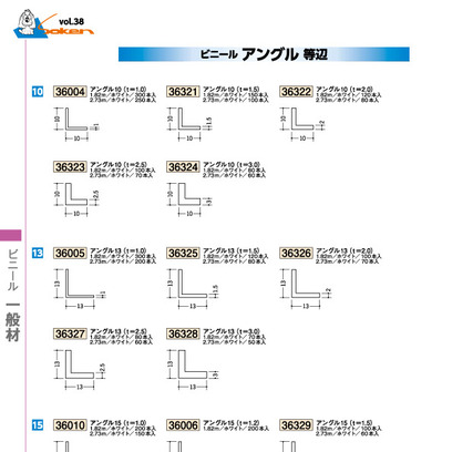 ビニールアングル等辺 アングル13(t=1.5) 長さ1.82m/2.73m