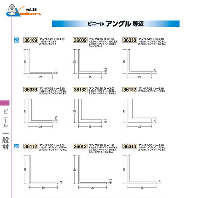 ビニールアングル等辺 アングル30(t=3.0) 長さ1.82m/2.73m