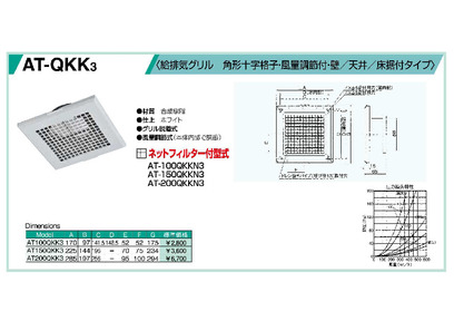 給排気グリル 角形十字格子•風量調節付•壁/天井/床据付タイプ ATQKK3