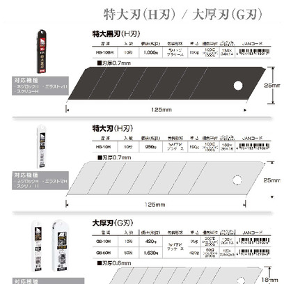 カッター用替刃 HB-10H 特大刃(H刃) 10枚入 0.7mm厚