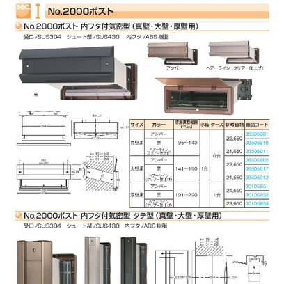 №2000ポストタテ型内フタ付気密型厚壁用 水上