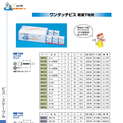 ワンタッチビス 軽量下地用 ユニクロ ラッパ 3.0×20/22・3.5×22/25/28/38/41/51・3.8×65・4.2×75