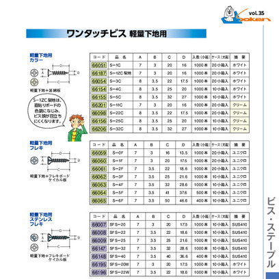 ワンタッチビス 軽量下地用 フレキ カラー【ホワイト】 線径3.0mm×長さ20mm・線径3.5mm×長さ22/25/32mm 創建