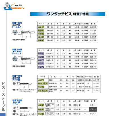ワンタッチビス 軽量下地用 ユニクロ ドームビス 線径4.2mm×長さ13/16/19/25/32mm 創建