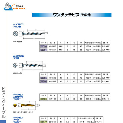 ワンタッチビス ALC用 トラス頭ステンレス(SUS XM7) 線径6.0mm×長さ50/65mm 創建