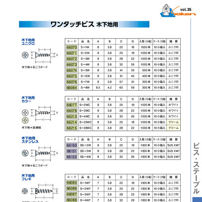 ワンタッチビス 木下地用 カラー【ホワイト】 線径3.8mm×長さ25/28/32mm 創建