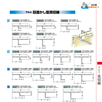 アルミ製目透かし型見切縁 アルミART-12 アルマイトシルバー 長さ3m 創建