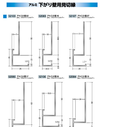 アルミ製下がり壁用見切縁 アルミD型52 アルマイトシルバー 長さ3m